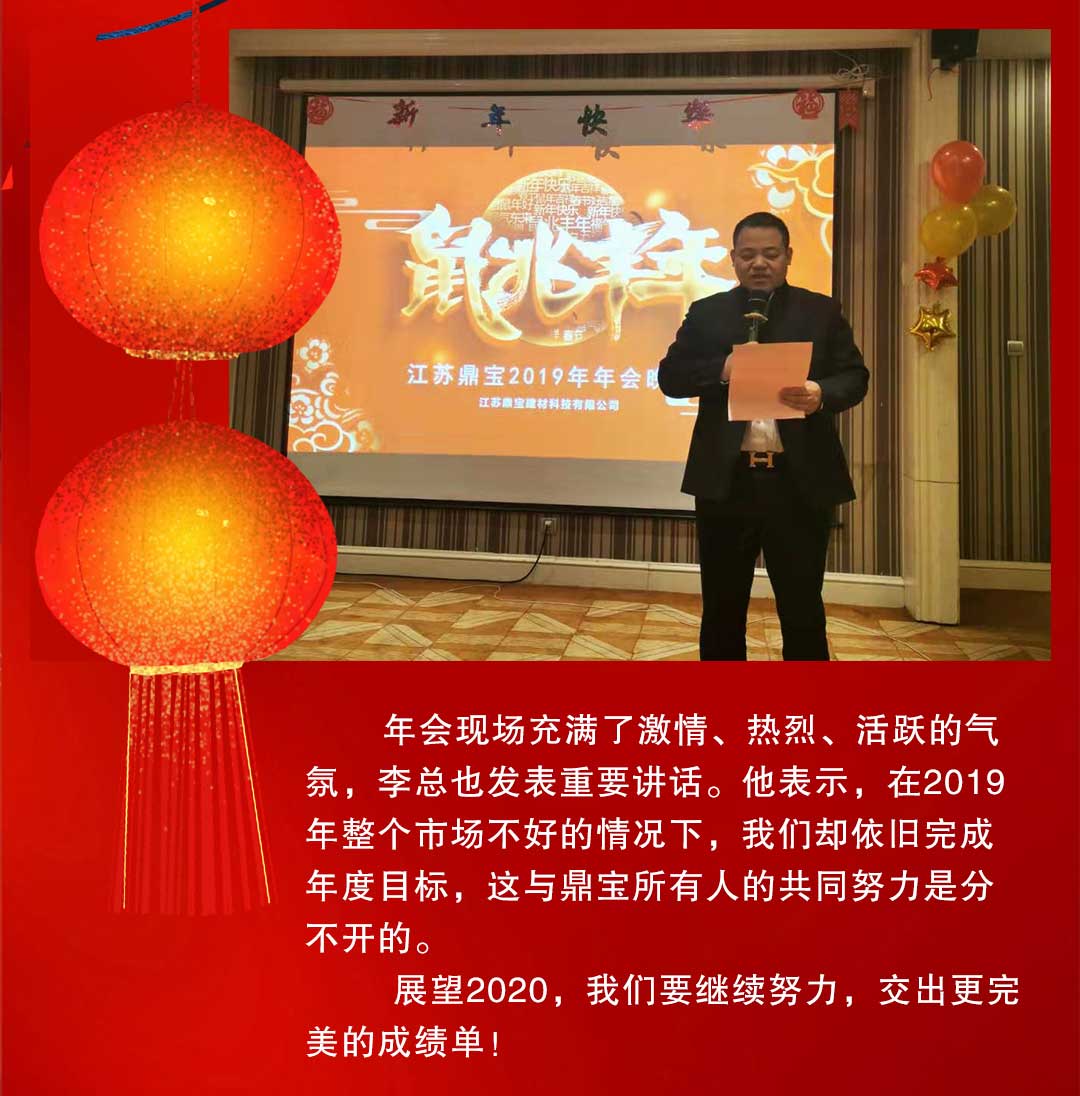 2019年就這樣過(guò)去了,充滿希望與挑戰(zhàn)的2020悄然來(lái)臨。在過(guò)去的一年里,我們有歡笑也有淚水,各項(xiàng)工作都取得了豐碩的收貨,面對(duì)2020,我們滿懷憧憬,激情澎湃,有更高的目標(biāo)等著我們?nèi)?shí)現(xiàn),更大的市場(chǎng)等著我們?nèi)フ鞣?,讓我們祝愿鼎寶的明天更加輝煌!