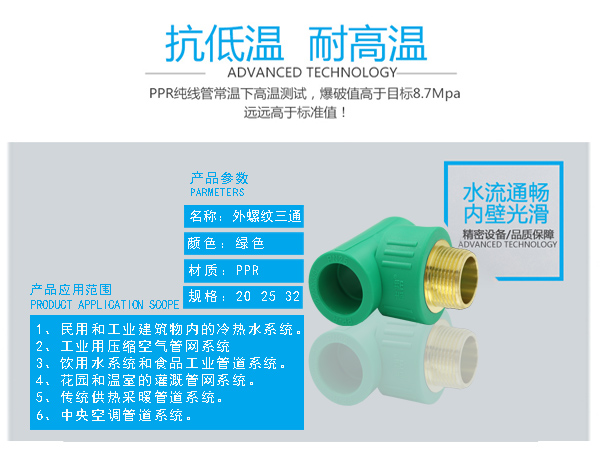 □ 管件連接牢固:由于聚丙烯具有良好的熱熔接性能,熱熔連接將同種材料制造的管材和管件連接成為一個(gè)整體,杜絕了漏水的隱患。