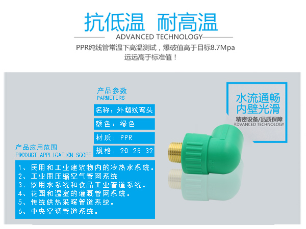 □ 管件連接牢固:由于聚丙烯具有良好的熱熔接性能,熱熔連接將同種材料制造的管材和管件連接成為一個(gè)整體,杜絕了漏水的隱患。